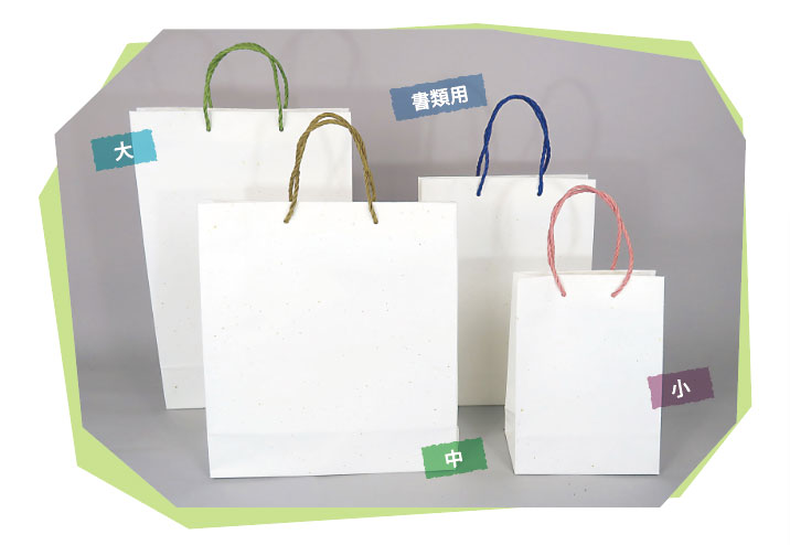 袋正面に各社のロゴを印刷したオリジナルの和紙手提げ袋を製造予定です。(要ロット)