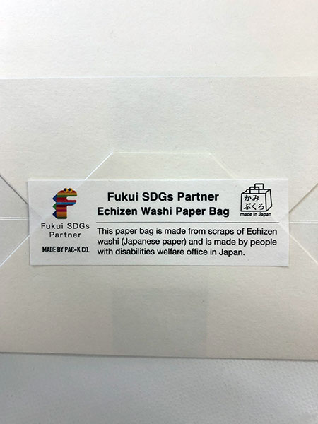世界ブランドとして認知されているS.I.C.のショップで、サンプルカットを入れる平袋と、サンプル帳をお渡しする手提げ袋に越前和紙袋をご使用いただきました。通常は透明のPP袋に使用されていましたので、お客様はすぐに気付かれ、「サスティナブルで上品な紙袋」と大変喜ばれました。デザイナー達にとって、日本製品は品質が良く、神秘的で、異文化への憧れの的となっているようです。