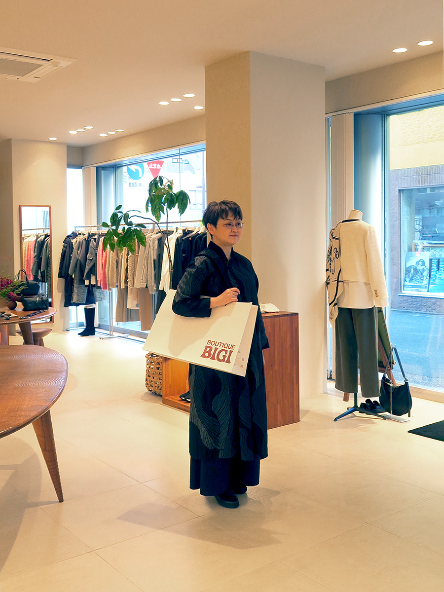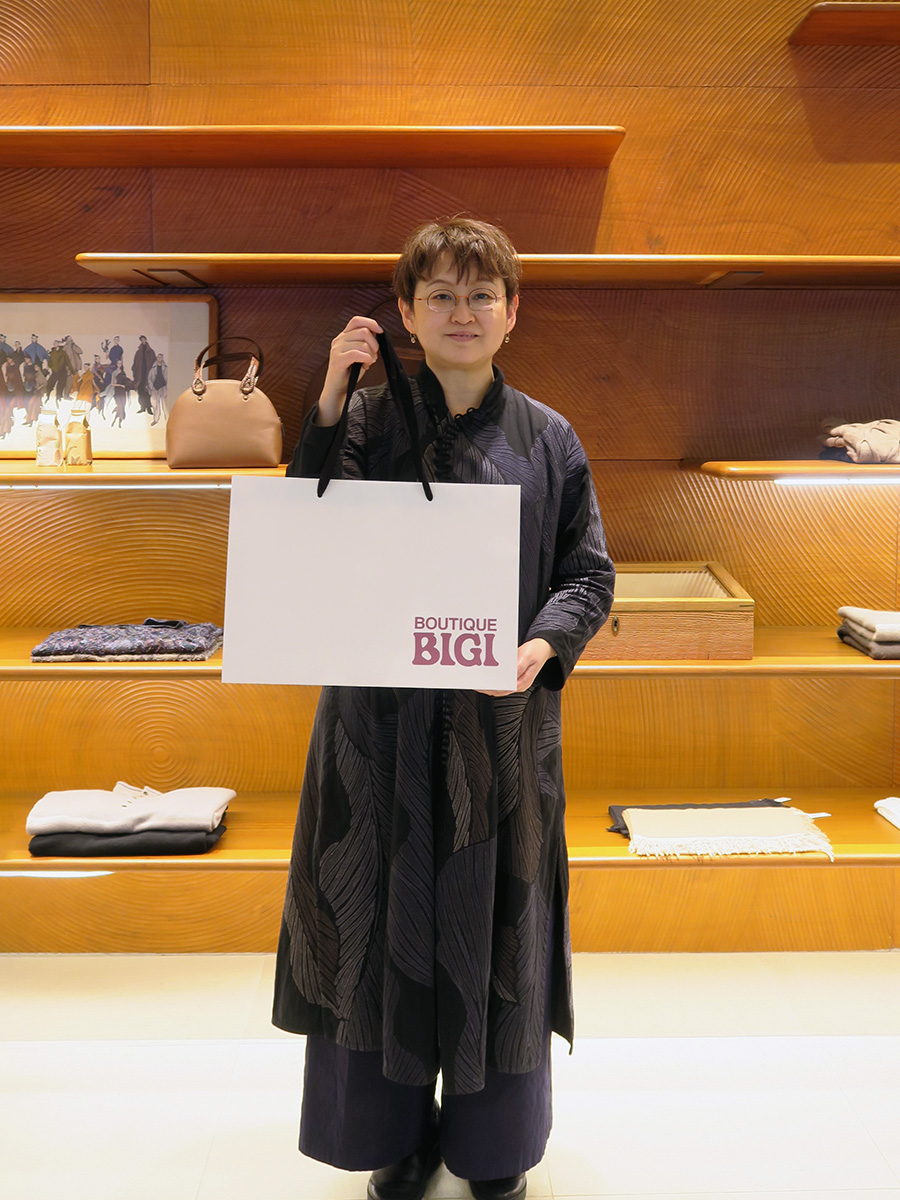 ヨーガンレール・イナバヨシエの併設2店舗を40年に渡って運営してこられましたが、イナバヨシエブランドが2024年に終了したことを機に、合体してBOUTIQUE BIGIとして生まれ変わりました。ヨーガンレールを筆頭に、レキップ、モガ、デパリス、プルミエなど日本のレディースブランドをセレクトしていらっしゃいます。
